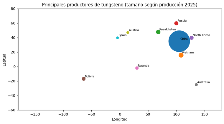 Este es el ranking de los mayores productores mundiales de tungsteno: